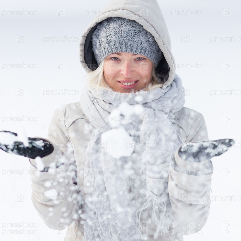 Девушка играет со снегом