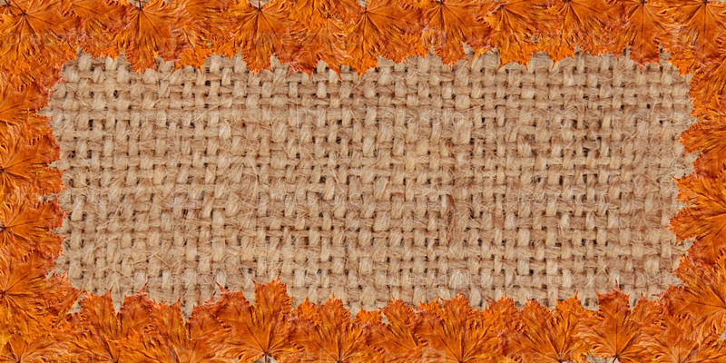 Кадр из желтых листьев на мешковине