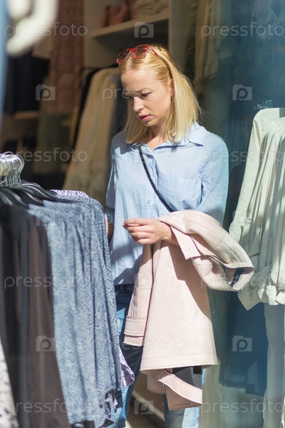 Красивая женщина в магазине одежды
