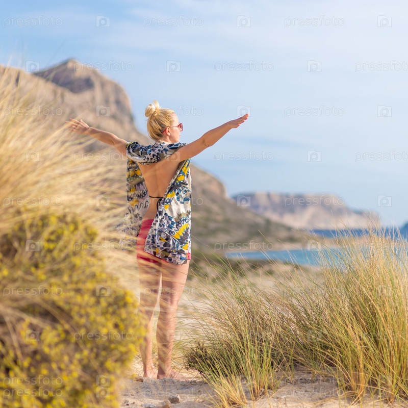 Счастливая женщина, наслаждаясь солнцем