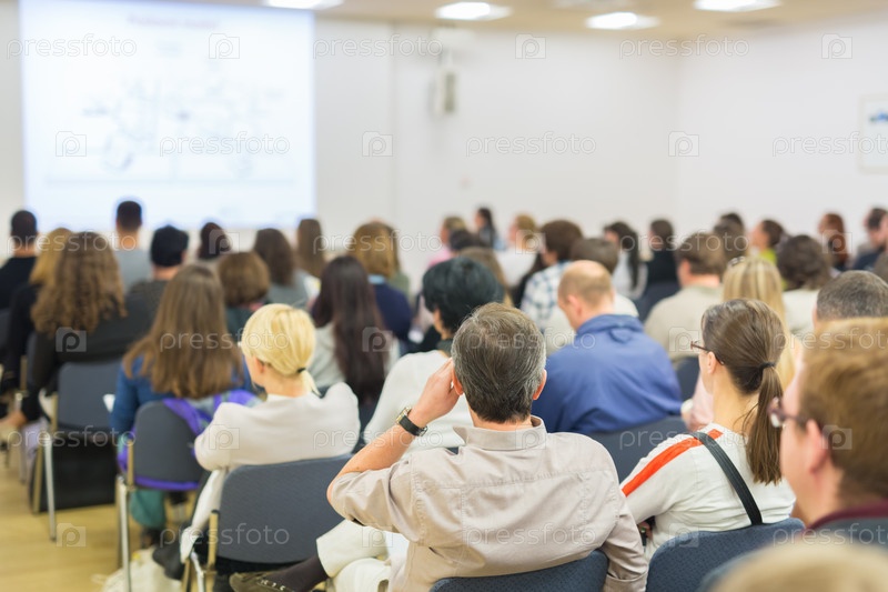 Аудитория в лекционном зале на научной конференции
