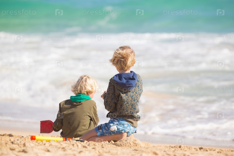 Мальчики играют с игрушками на пляже