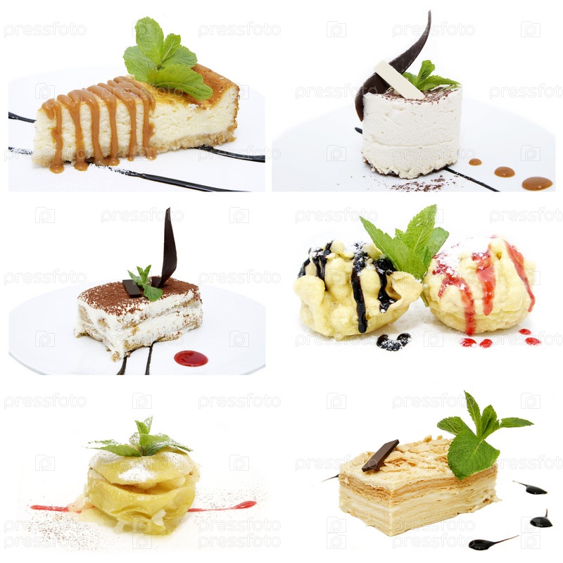 Шоколадные десерты с кремом и мороженое на белом фоне