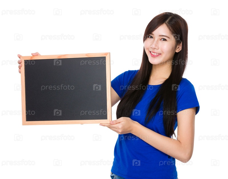 Молодая женщина с табличкой