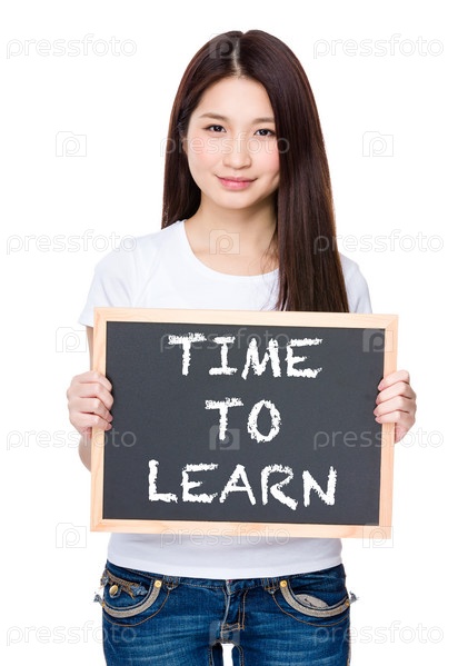 Студентка с табличкой