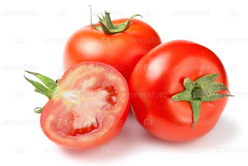 Свежие помидоры на белом фоне
