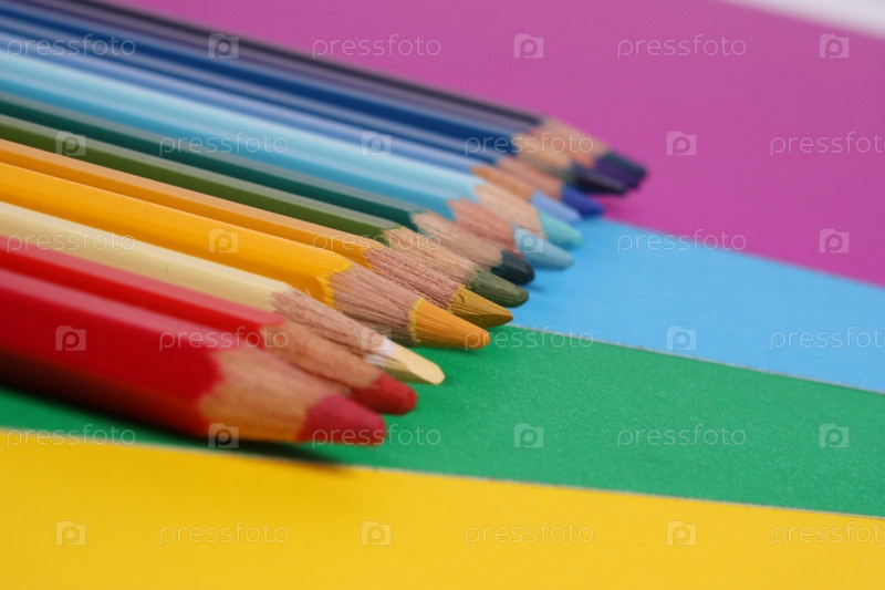 Яркие цветные карандаши на цветной бумаге