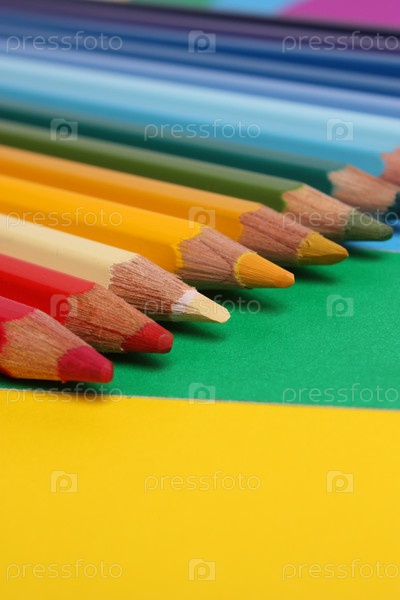Яркие цветные карандаши на цветной бумаге