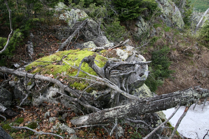 Мхи, лишайники, камни. Иремель. Южный Урал