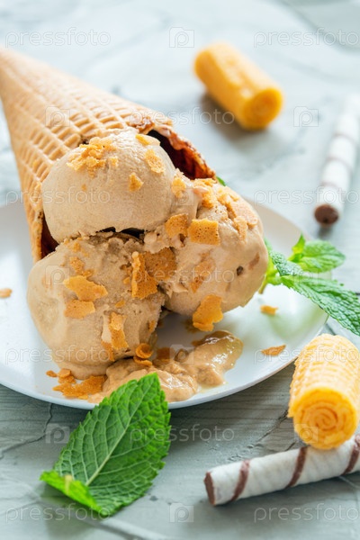 Вафельный рожок с карамельным мороженым
