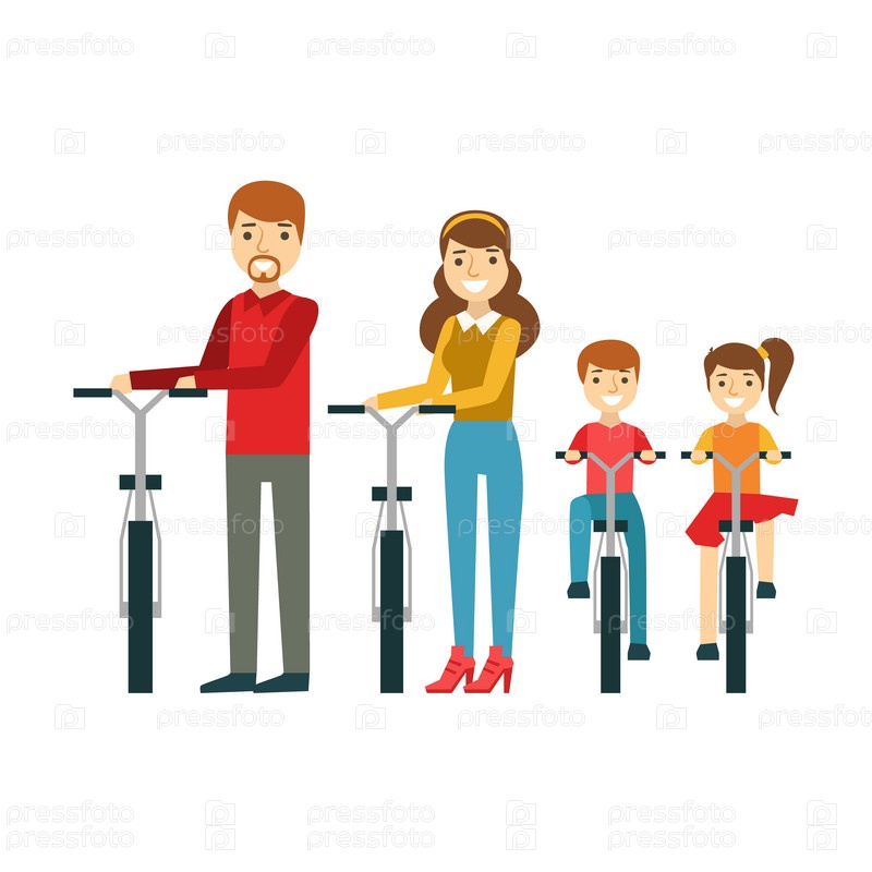 Родители и дети с велосипедами