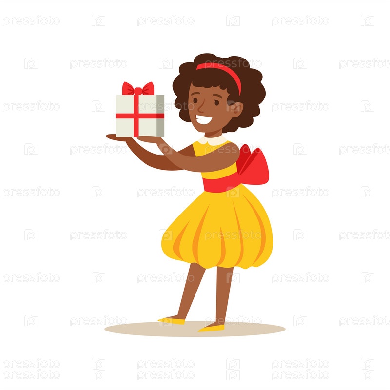 Девушка в желтом платье с подарком