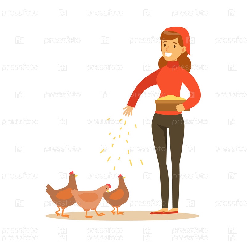 Женщина кормит цыплят