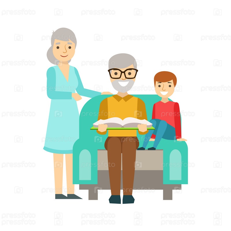 Чтение книги с внуком