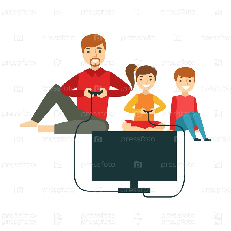 Отец играть в видеоигры с детьми