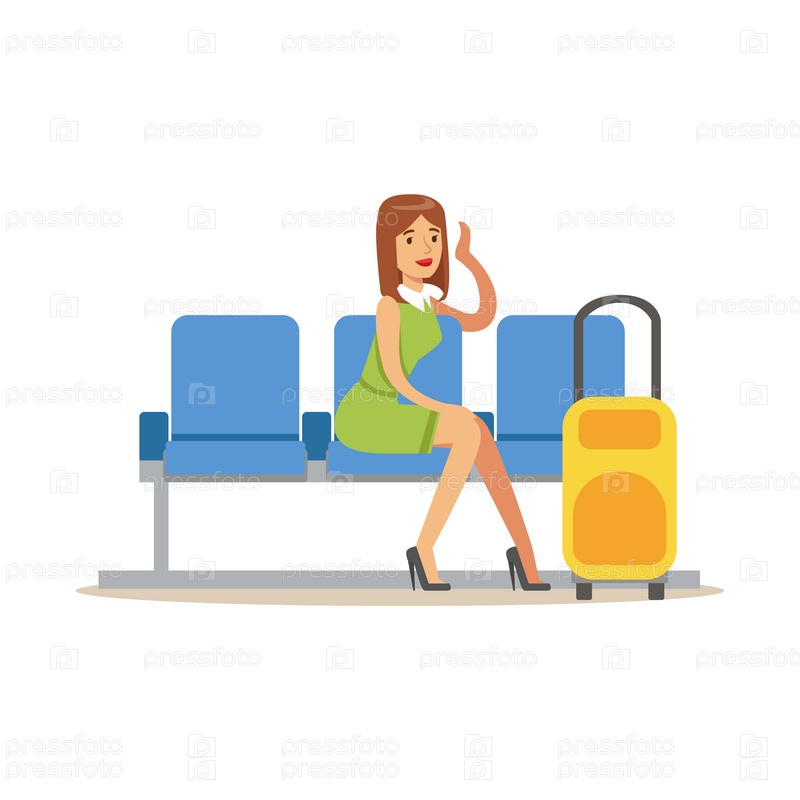 Женщина в ожидании своего рейса в вестибюле аэропорта