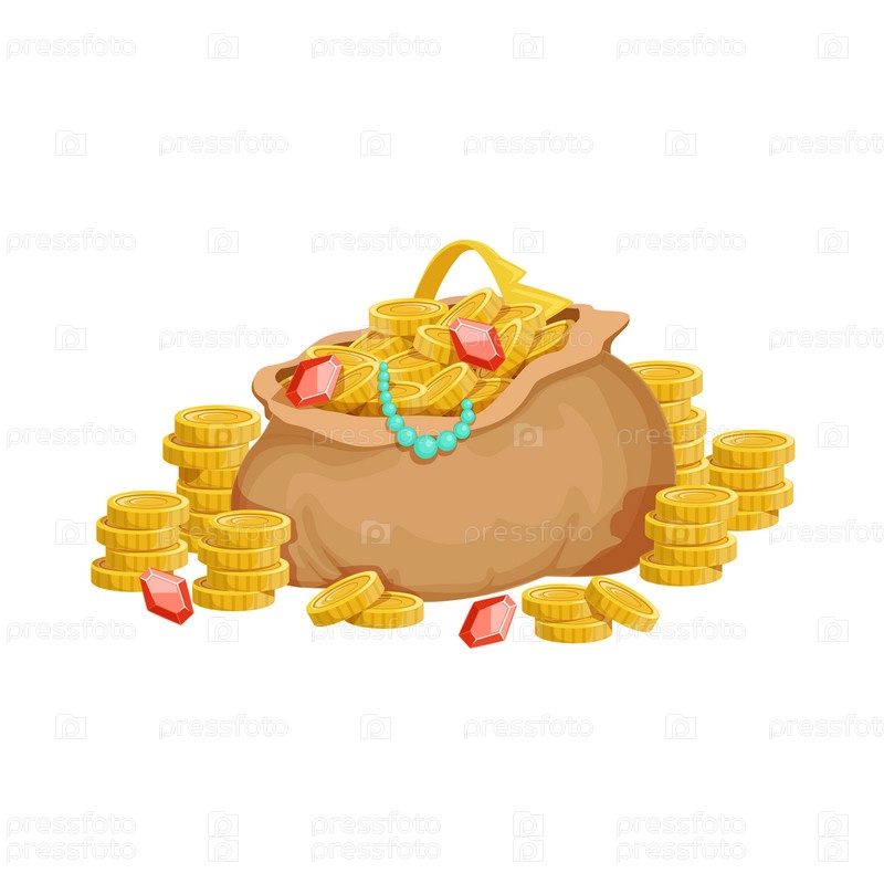 Большой мешок с золотыми монетами и ювелирными изделиями
