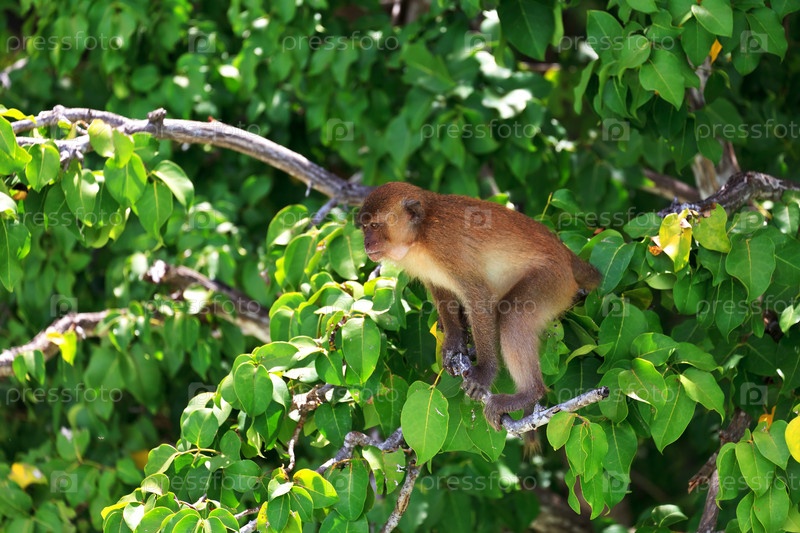 Коричневая обезьяна на ветвях дерева