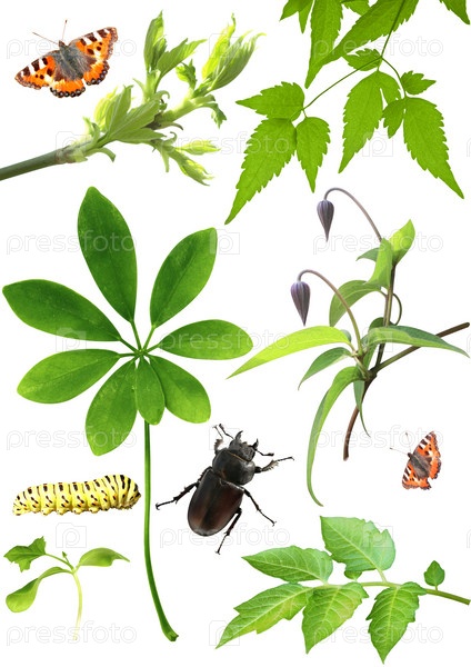 Зеленые листья и насекомые