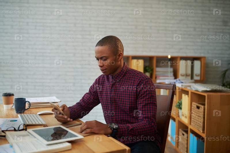 Афро-американский предприниматель со смартфоном