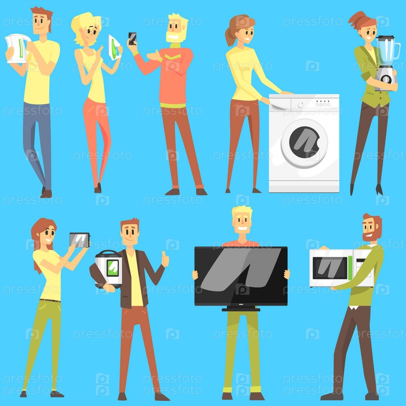Счастливые улыбающиеся люди в отделе домашнего оборудования