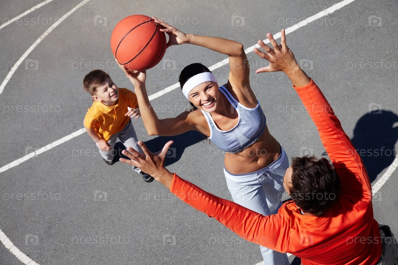 Женщина играет в баскетбол