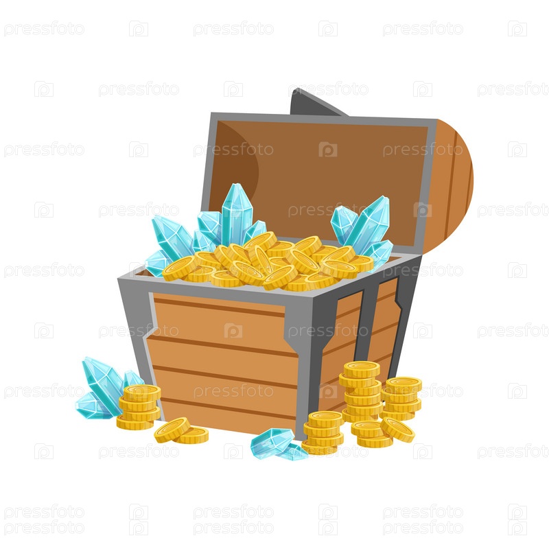 Пиратский сундук с золотыми монетами и драгоценными камнями