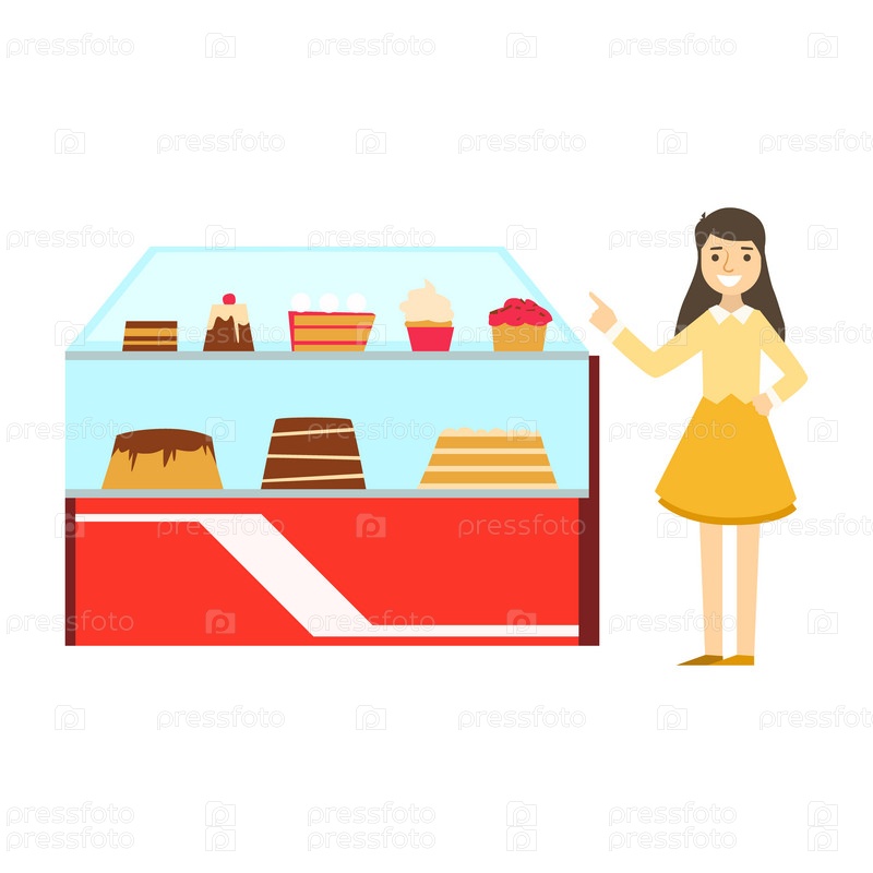 Женщина рядом с витриной с тортами
