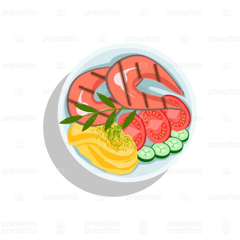 Стейк из лосося с картофельным пюре и овощами
