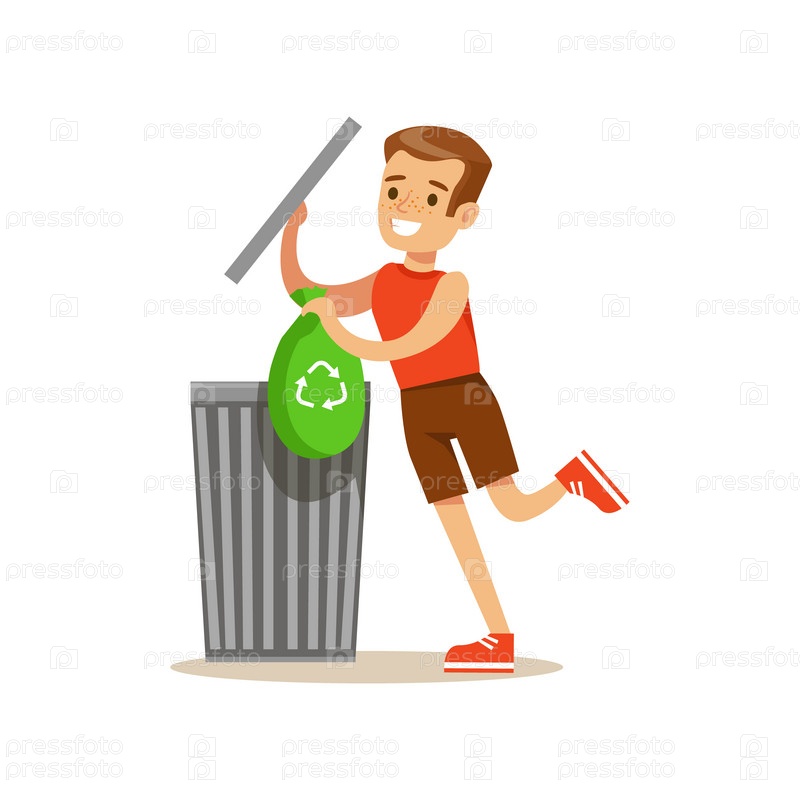 Мальчик выбрасывая отходы в переработку