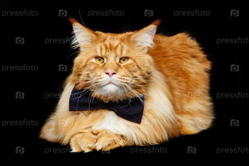 Красивая кошка мейн-кун с галстуком