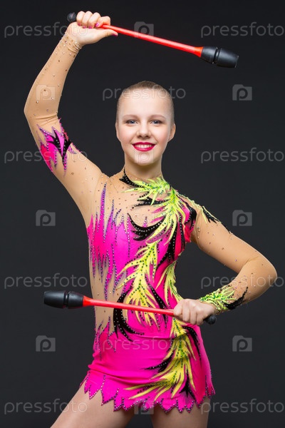 Красивая гимнастка с булавами