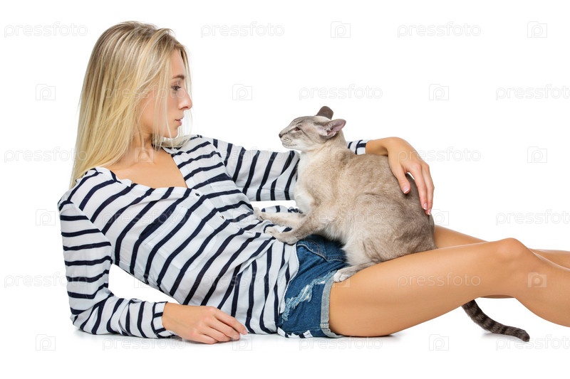 Красивая девушка с сиамской кошкой