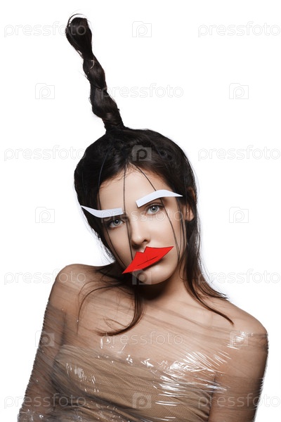Красивая девушка с аппликацией на лице