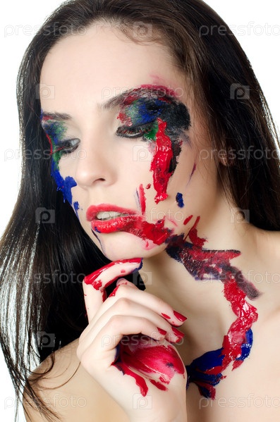 Красивая женщина с краской на лице