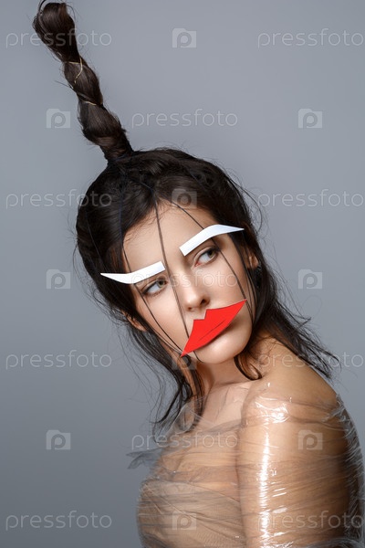 Красивая девушка с аппликацией на лице