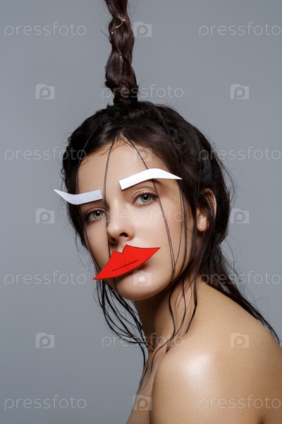 Красивая девушка с аппликацией на лице