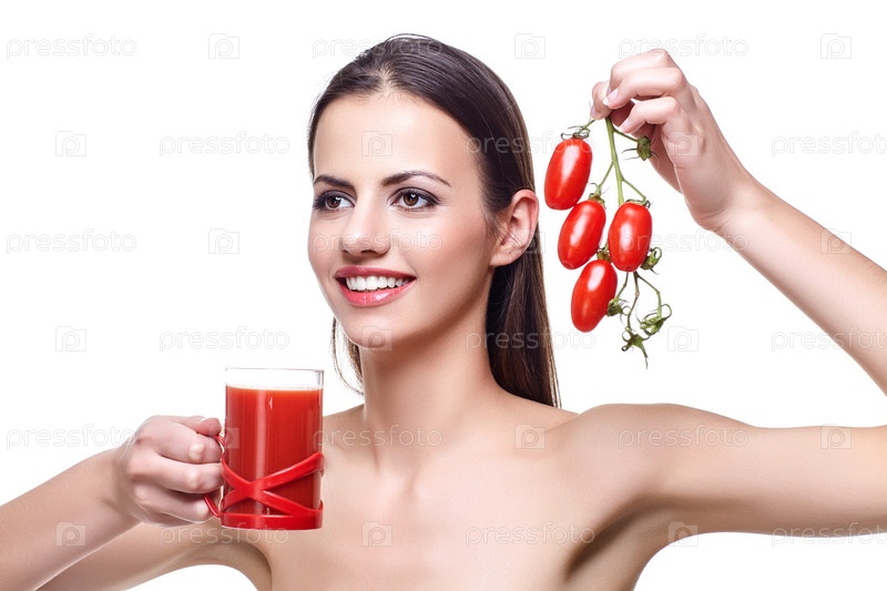 Девушка с помидорами черри и соком