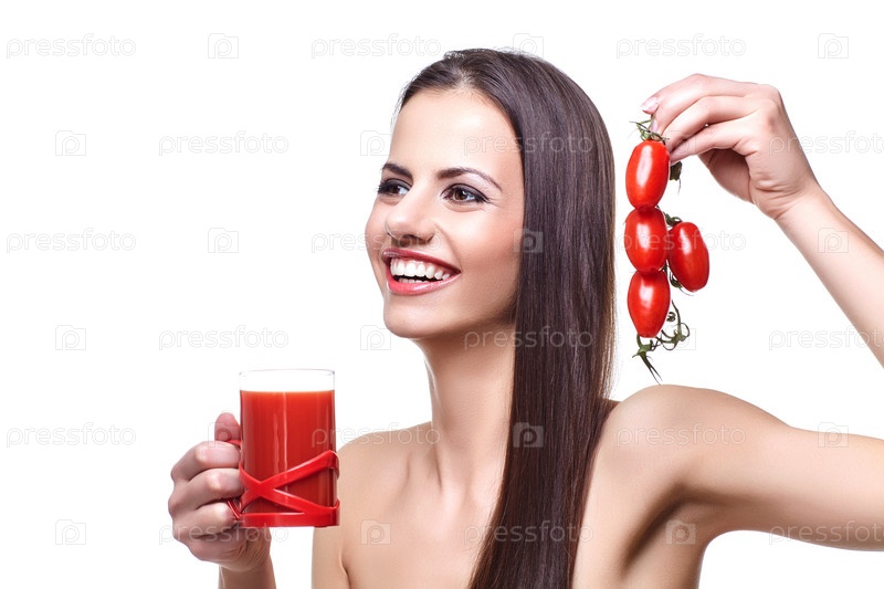 Девушка с помидорами черри и соком