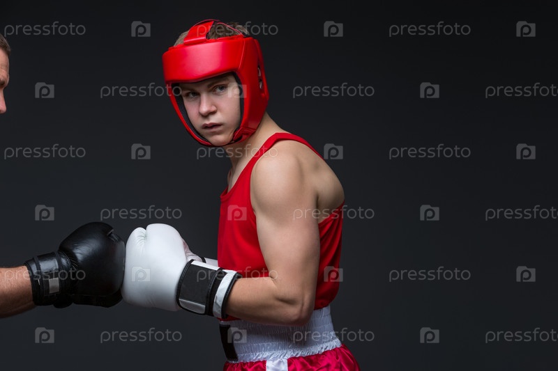 Молодой боксер в красной форме