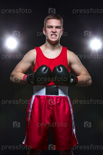 Молодой боксер в красной форме