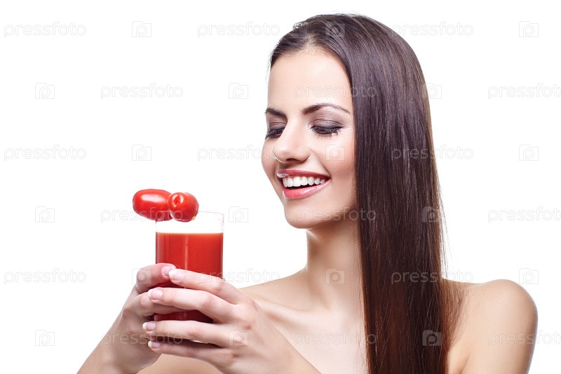 Девушка с помидорами черри и томатным соком