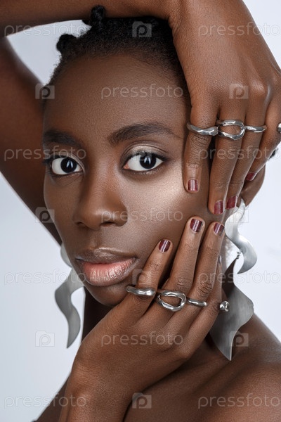 Красивая чернокожая девушка с большими серьгами