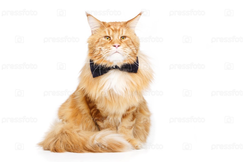 Красивая кошка мейн-кун с галстуком-бабочкой