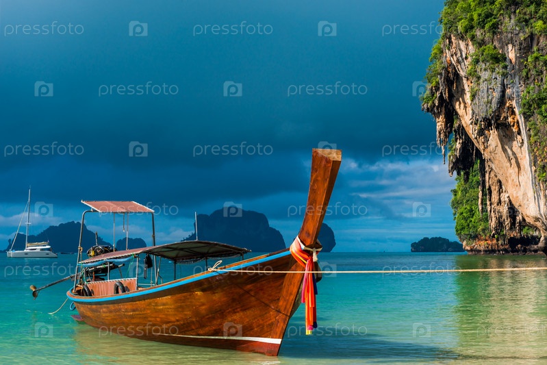 Тайский лодка с длинным хвостом у берега
