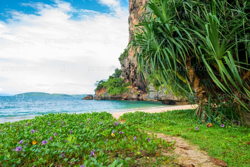 Красивая бухта с пышной растительностью в солнечный день