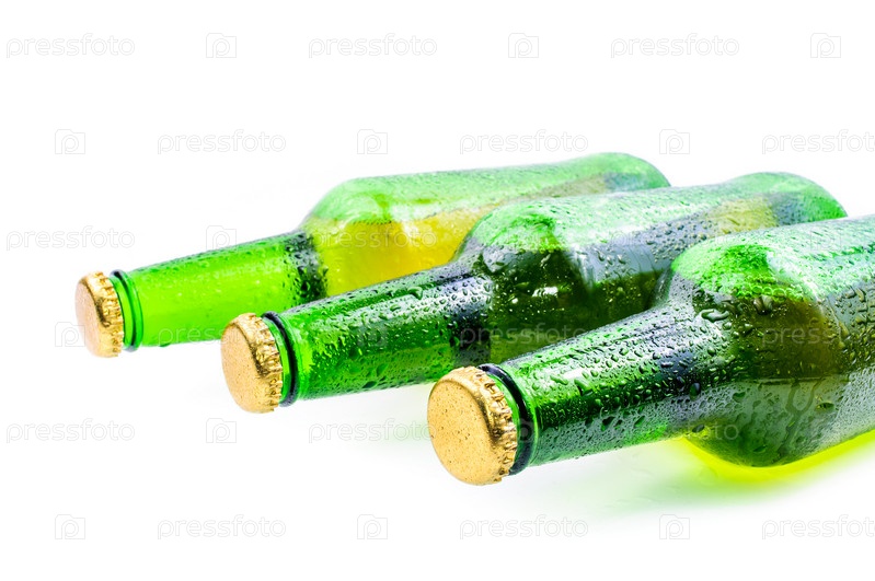 Запотевшие бутылки пива, изолированные на белом фоне