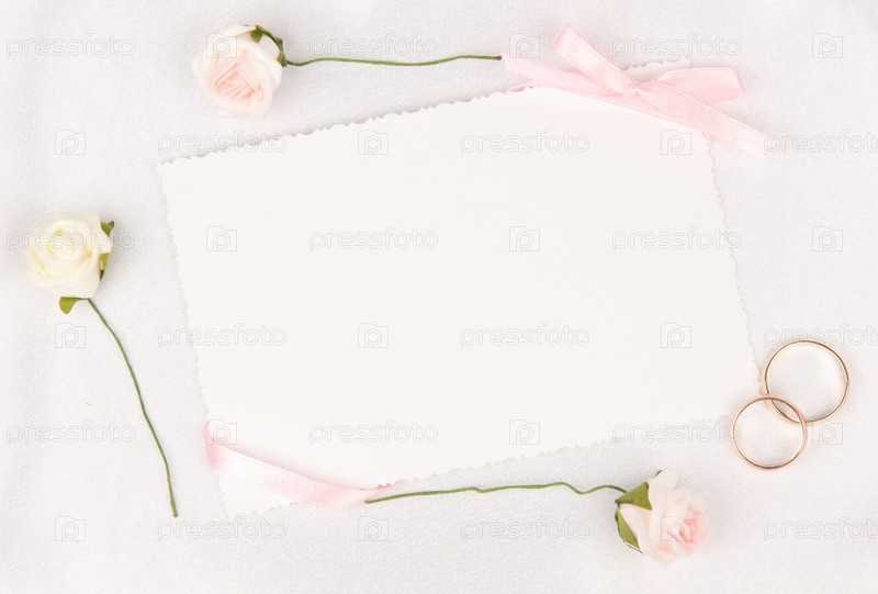 Свадебные аксессуары и карточка для текста на белом шелке