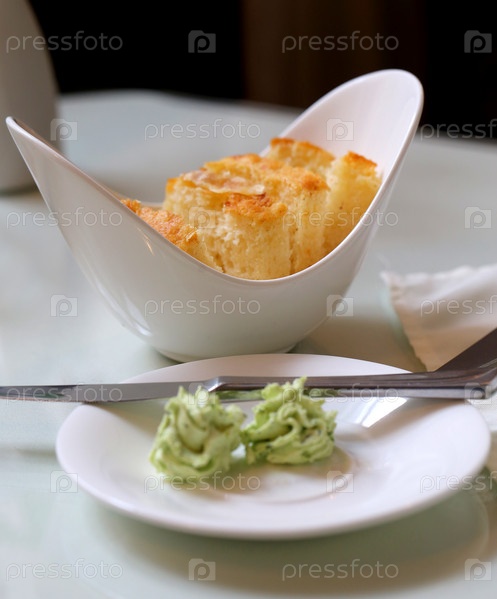 Фотография вкусного хлеба и сливок