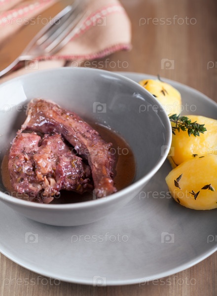 Мясо кролика с винным соусом